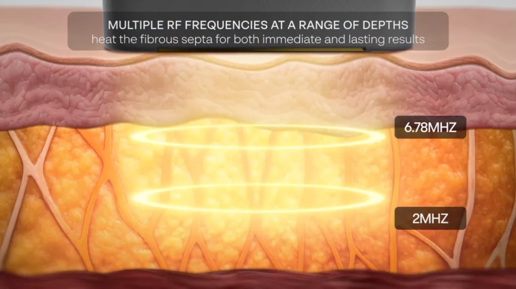 - 6.78 MHz creates uniform dermal heating for collagen stimulation