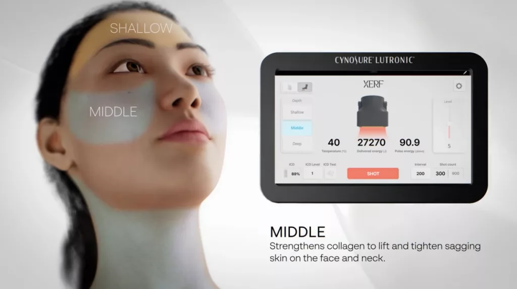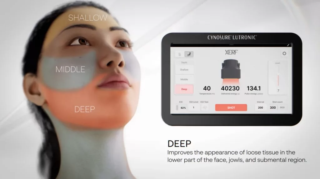 Developed by Cynosure, a global leader in medical aesthetic technology, XERF represents one of the first RF devices capable of delivering structural skin tightening rather than superficial heat alone. It is FDA-cleared in the United States for non-invasive soft-tissue coagulation and skin tightening, and has become widely adopted in South Korea for its ability to create natural-looking, long-lasting lift.
